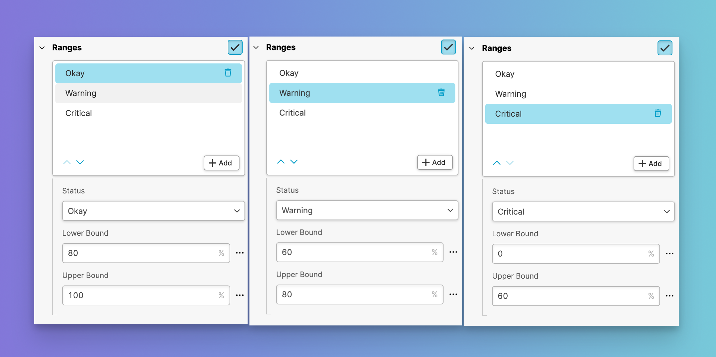 In this example, we have activated ranges and defined three range rules for this variable, which is used to display a percentage value.